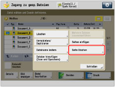 Wenn Sie mehrere Dateien wählen und die Taste [Seite löschen] berühren, wird die ausgewählte (markierte) Datei zu der Datei, aus der Seiten gelöscht werden. |