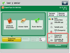 Puede guardar las teclas de acceso directo que se muestran en la pantalla Enviar. Puede guardar un máximo de dos botones desde [Opciones].
