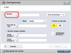 Después de pulsar [Aceptar], el campo estándar que ha introducido aparece como asteriscos (********) en la pantalla de opciones de I-fax. Incluso si está desactivada la opción <Enviar vía servidor>, a través del servidor se realiza una confirmación de entrega de los documentos enviados con el modo Completo. |