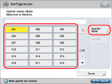 Seleccione un botón de acceso rápido que desee guardar o editar → pulse [Guardar/ Editar].