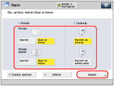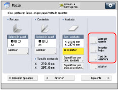 Si el papel de portada se alimenta desde la Unidad de Inserción N1, no podrá especificar opciones de lectura para la página de portada. |