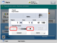 Si cambia la densidad en [Opciones], es posible que el ajuste de la densidad durante la copia no tenga ningún efecto en el resultado final. |