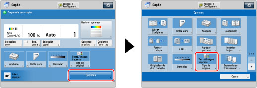 Pulse [Opciones] → [Tipo de original].
