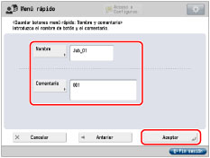 Pulse [Nombre] → introduzca un nombre → pulse [Aceptar].