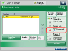 Pulse [PDF] para <Formato de archivo> → [Compacto] → [Aceptar].