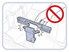 Al poner de nuevo el depósito de papel en su posición original, tenga cuidado de no pillarse los dedos. |