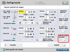 Cuando vuelva a abrir la pantalla después de haberla cerrado pulsando [Aceptar], los valores de la pantalla volverán a '0'. Sin embargo, el valor ajustado todavía será efectivo en cada campo Total. Si repite el paso, compruebe la longitud de 'i' en la nueva página de prueba a introduzca el nuevo valor. |