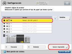Seleccione un origen de papel que contenga un tipo de papel personalizado → pulse [Iniciar impresión].