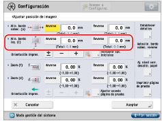 Vuelva a la pantalla <Ajustar posición de imagen> y mida la longitud de 'i' en los lados frontal y posterior de la página de prueba impresa.