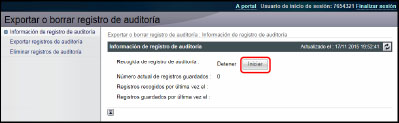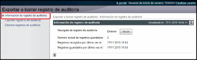 Puede iniciar o detener la recogida de información de un registro. Los registros recogidos se guardan como un solo archivo de registro de auditoría.