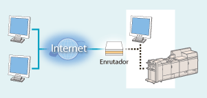 Por otro lado, si se asigna una dirección IP privada, su equipo de impresora/multifunción está cerrado a redes externas y únicamente pueden acceder a él los usuarios de su red de área local como, por ejemplo, una red LAN de la empresa.