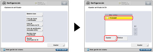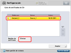 Seleccione el certificado de CA que desee eliminar → pulse [Eliminar].