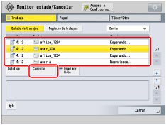 No es posible seleccionar varios trabajos y cancelarlos todos al mismo tiempo. Seleccione y cancele los trabajos de uno en uno. |