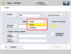 Establezca las condiciones de destino según las especificaciones del equipo del receptor. Si establece condiciones que no admite el equipo del receptor, se puede producir un error de transmisión. |