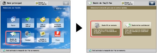 → [Buzón de fax/I-fax] → [Buzón RX en memoria].