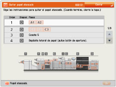 Si se ha atascado papel en varios sitios, extraiga el papel atascado en el orden indicado en la pantalla táctil. |