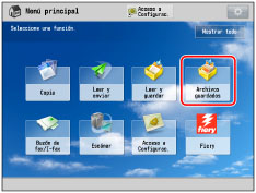 Permite a los usuarios guardar los archivos leídos con este equipo o los datos enviados desde un ordenador personal a través del controlador de la impresora. Puede imprimir el documento guardado siempre que sea necesario con las opciones que desee. También puede convertir el formato de archivo de los documentos a otro formato, como PDF, para enviarlos por correo electrónico con la función Enviar.