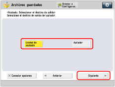 Si selecciona [Apilador], podrá cambiar el destino de salida para cada trabajo a [Área de apilamiento] o [Bandeja de salida]. |