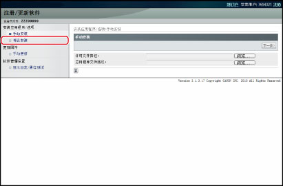 按 [管理设置] → [授权/其他] → [注册/更新软件]。