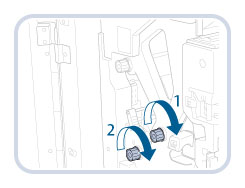 沿箭头方向(顺时针)转动旋钮(F-B2),然后取出所有卡纸。