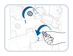 转动旋钮(F-C3),将卡纸输送到书本托盘的输送导板。
