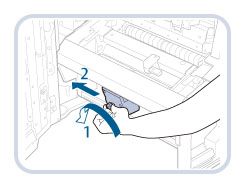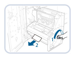2. 取出鞍式装订处理器的输出区域中的所有卡纸。 |