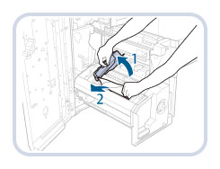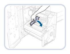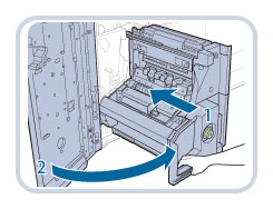 | 1. 将鞍式装订处理器 (F-C4) 轻轻地推回到本机中。始终确保将鞍式装订处理器推入到位。 |