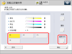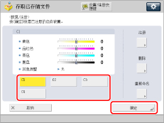 如果没有输入任何字符就按 [确定],按键名称恢复为当前名称(默认为 C1 到 C4)。
