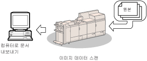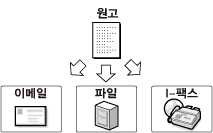 송신 기능을 사용하여 스캔한 이미지 또는 문서 데이터를 파일 서버에 송신하거나 이메일 또는 I-팩스로 송신할 수 있습니다. 다양한 파일 형식(JPEG, TIFF, PDF, XPS, OOXML)이 지원되므로, 디지털 사무 환경에 더 유연하게 적응할 수 있습니다.