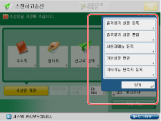 기기가 기동된 후 표시되도록 설정할 수 있는 화면에 대한 자세한 내용은 "기동/복구후 표시 화면"을 참고하십시오. 지정할 수 있는 설정은 사용자의 사용 권한에 따라 다를 수 있습니다. 즐겨찾기 설정 등록 및 편집에 대한 자세한 내용은 다음을 참고하십시오: 복사의 경우 즐겨찾기 설정 버튼 등록/편집/삭제 스캔하고 송신의 경우 즐겨찾기 설정 버튼 등록/편집/삭제 저장파일 이용의 경우 즐겨찾기 설정 등록 및 편집 스캔하고 저장의 경우 즐겨찾기 설정 등록 및 편집 기타 기능 및 즐겨찾기 설정의 단축키 등록에 대한 자세한 내용은 다음을 참고하십시오: 복사의 경우 단축키 등록 스캔하고 송신의 경우 단축키 등록 |