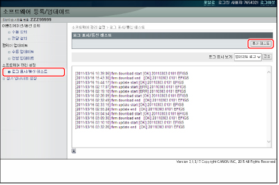 [관리설정] → [라이센스/기타] → [소프트웨어 등록/업데이트]을 누릅니다.