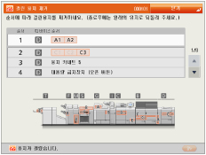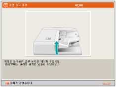 여러 위치에서 용지가 걸린 경우, 터치 패널 화면에 표시된 순서대로 걸린 용지를 제거하십시오. |