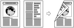[앞뒤페이지 양면]: | 왼쪽 페이지 또는 오른쪽 페이지의 앞면 및 뒷면을 용지 한 장의 양면에 복사합니다. |