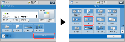선택한 원고 크기가 A6R 인 경우 [양면원고]를 선택할 수 없습니다. 기기는 선택한 용지에 따라 배율을 자동으로 선택합니다. [N on 1]을 설정할 경우 중앙 이동 모드도 자동으로 설정됩니다. |