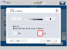 [조정]을 <배경조정>에 대해 눌러 배경 농도를 조정한 경우 [자동] 설정이 취소됩니다. 이와 마찬가지로 [조정]에서 수동 조정한 상태에서 [자동]을 누른 경우 조정이 취소됩니다. 기기는 배경에 맞는 농도를 자동으로 조정합니다. |