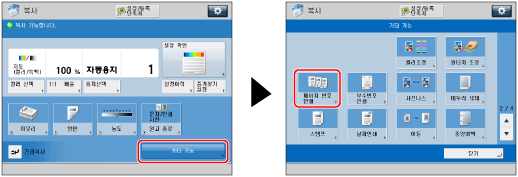 양면 복사를 실행할 때 뒷면에 인쇄 위치를 설정하려면 [앞면과 반대] 또는 [앞면과 같음]을 선택하고 → [확인]을 누릅니다.