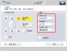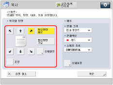 양면 복사를 실행할 때 뒷면에 인쇄 위치를 설정하려면 [앞면과 반대] 또는 [앞면과 같음]을 선택하고 → [확인]을 누릅니다.