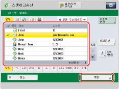 이 기기의 주소록에 등록된 수신인을 검색 및 지정할 수 있습니다.