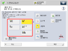 → [스캔하고 송신]을 누르고 → 수신인을 지정한 후 → 파일 형식 버튼을 누릅니다.