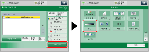 수신인을 지정하고 → [기타 기능]을 누르고 → [농도]을 누릅니다.