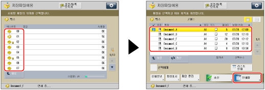 원하는 박스를 선택하고 → 원하는 파일을 선택하고 → [인쇄함]을 누릅니다.