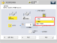 <스택커 배지부>에 [스택부]를 선택한 경우에만 [ 스택부수 지정]을 설정할 수 있습니다. |