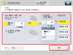 설정을 선택한 후 [상세/편집]을 눌러 삽입지 및 장 페이지지 에 대한 설정을 확인/변경할 수 있습니다. 삽입지를 삭제하려면 삭제할 설정을 선택하고 → [삭제]를 누릅니다. 터치 패널 화면에 나타난 인덱스 수는 반드시 용지 공급원에 적재된 인덱스지의 인덱스수와 같아야 합니다. |