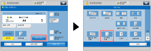 파일 내용 및 설정 조합에 따라 인쇄 성능이 최적 상태가 아닐 수도 있습니다. [부수번호 인쇄]를 [표지추가], [삽입지] 또는 [구분종이]와 같이 사용하는 경우, 스탬프는 삽입된 용지에는 인쇄되지 않습니다. |