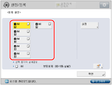 급지한 용지의 종류가 상세 설정 리스트에 표시되지 않는 경우, 용지 종류를 등록할 수 있습니다. 용지 종류를 등록하는 방법은 "이 기능 개요"을 참고하십시오. 용지 공급원의 사용자 설정 용지 종류를 등록하는 동안에는 용지 종류 설정이 보호되어 [환경 설정](설정/등록)의 [용지종류의 관리설정]에서 사용자 설정 용지 종류의 상세 정보를 변경하거나 사용자 설정 용지 종류를 삭제할 수 없습니다. |