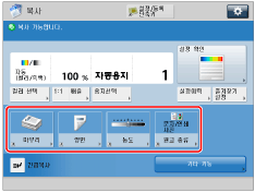 복사 화면에 표시된 단축키에 모드를 등록할 수 있습니다. [기타 기능] 및 [즐겨찾기 설정]에서 원하는 버튼을 다섯 개까지 등록할 수 있습니다.