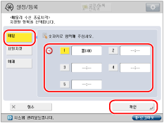 (숫자 키)를 사용하여 종료 시각을 입력하고 → [확인]을 누릅니다.