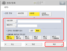 [사용자명]을 누르고 → 사용자 이름을 입력한 후 → [확인]을 누릅니다.