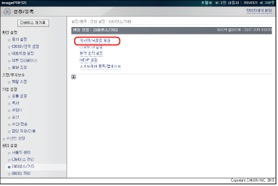 팝업 윈도우에 표시함: | 터치 패널 화면의 게시판을 팝업창으로 표시하도록 선택합니다. [포털에 표시]를 선택한 경우 게시판은 리모트 UI의 포털 페이지에 표시됩니다. |