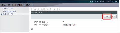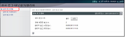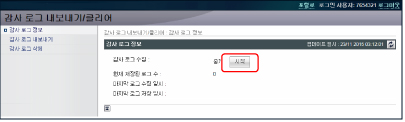 [설정/등록] → [디바이스 관리] → [감사 로그 내보내기/클리어] → [감사 로그 정보] → <감사 로그 수집>에 대해 [시작]을 클릭합니다.
